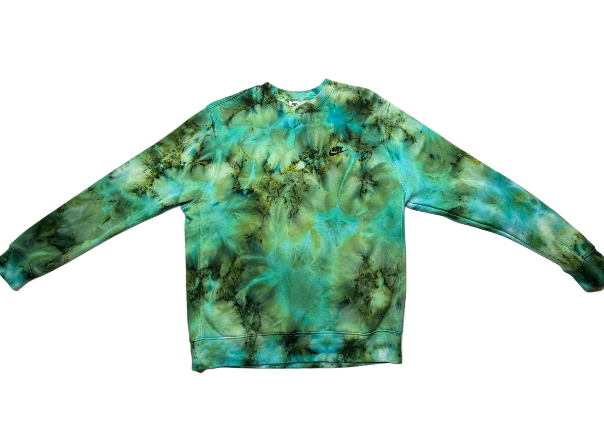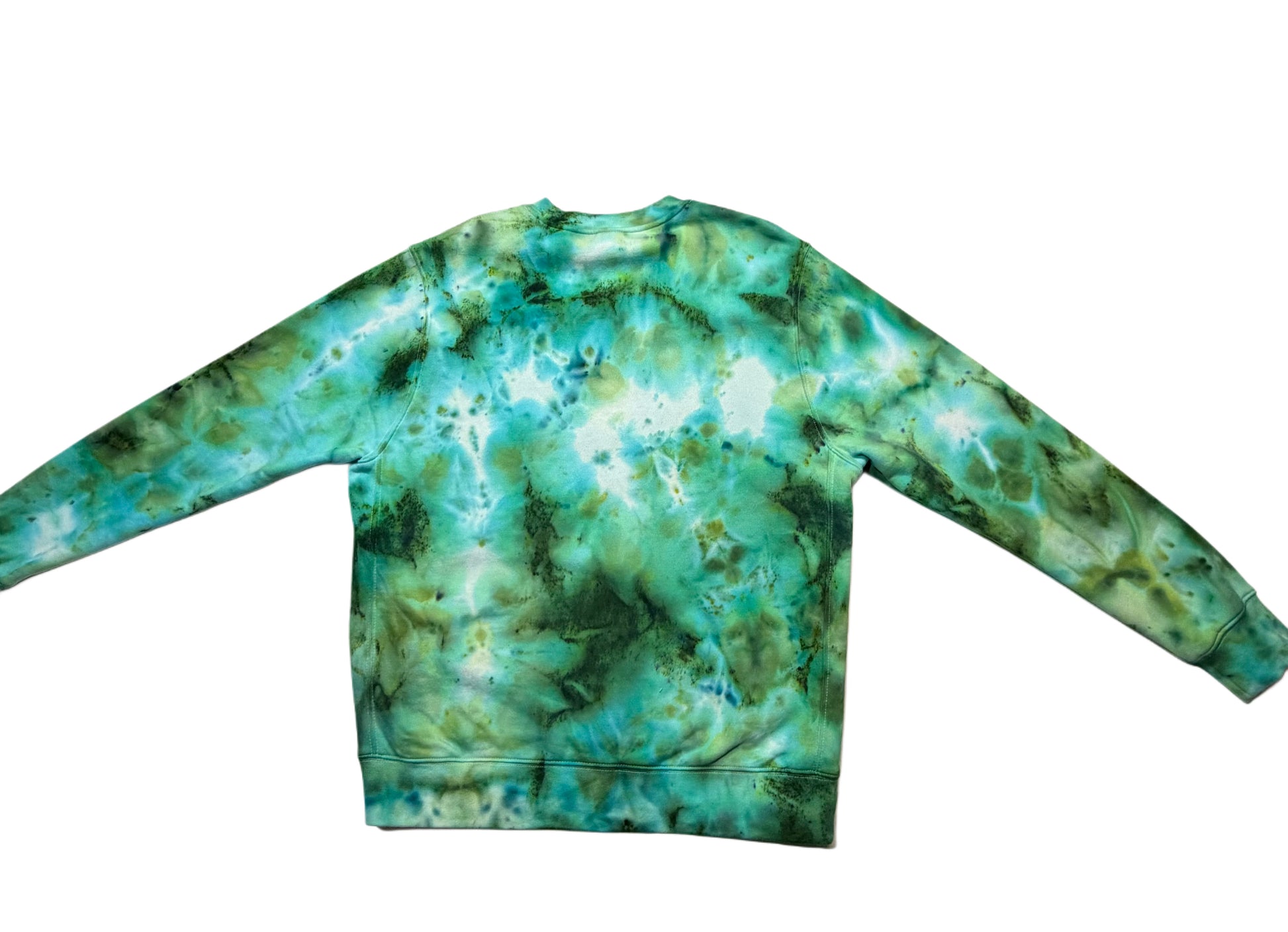 This crewneck was created using an ice-dye process, where dye is applied over ice and slowly melts into the fabric. As the ice breaks down, color travels naturally, creating soft blends, organic blooms, and layered depth that can’t be replicated.